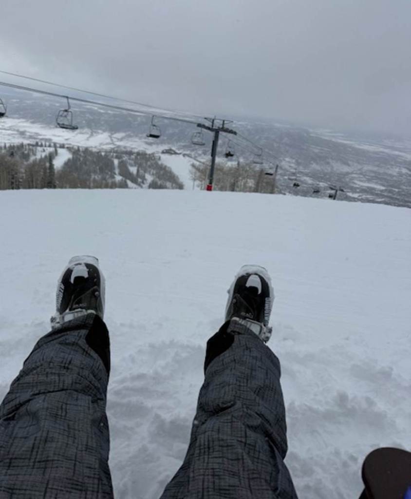 I spent the morning working my way across the mountain, learning the lifts and figuring out how to get around before settling in for a long set of runs on Morningside. That’s where Steamboat revealed itself to me — the backside, through the trees, thick powder on the blue runs off the Morningside lift. Run after run, the snow still falling, the trees muffling everything except the sound of my skis.